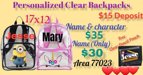 Personalized Clear Backpacks, Pencil Pouches And Boxes$35Houston, TX