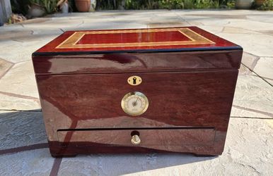 Quality Importers Desktop Cigar Humidor w/ Wood Inlay Design and Accessory Drawer Excellent Condition $80Sarasota, FL