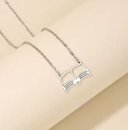 Brand New Dainty Silver Toned Open Book Pendant Necklace$16Alhambra, CA