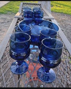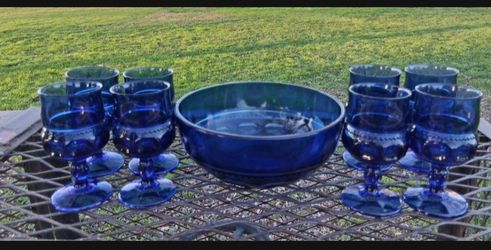 Set of 8- VTG 1960's Indiana Tiara Kings Crown Thumbprint Imperial Blue Cobalt Glasses and Serving Bowl...asking $20.00$20Bakersfield, CA