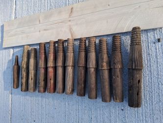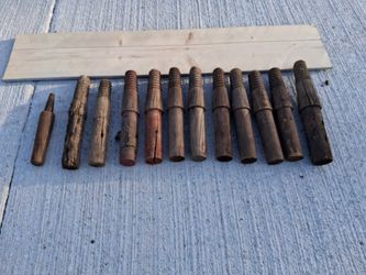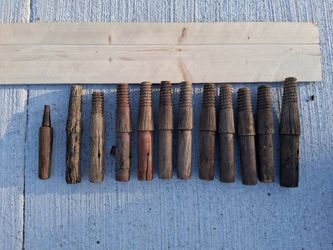 TWELVE (x12) ANTIQUE GLASS INSULATOR MOUNTS PEGS WOOD THREADED TELEPHONE / TELEGRAPH POSTS...asking $60.00$60Bakersfield, CA