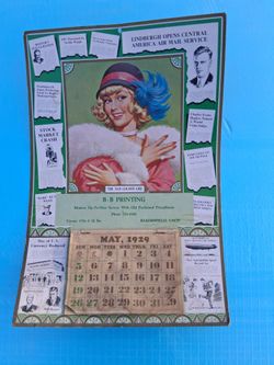 VINTAGE 1929 CALENDAR ADVERTISING SIGN from B-B Printing in Bakersfield, California, featuring historical events from 1929....asking $50.00$50Bakersfield, CA