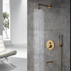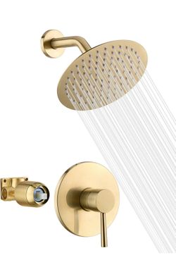 Brushed Gold Shower Faucet Set with 8 Inches Stainless Steel Rain Shower Head, Solid Brass Rough In Valve$99La Quinta, CA