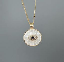 Trendy Round Pink Sea Shell Crystal Zircon Evil Eye Necklace Women PVD 18k Gold Plated Pendant Neck Jewelry$25Dana Point, CA