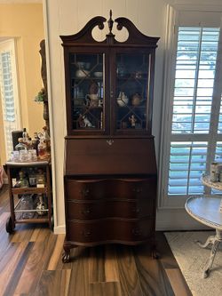 Vintage Antique Colonial Dark Wood Bookcase Secretary Writing Desk Claw Feet Glass Hutch$300Houston, TX