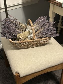 Farmhouse Real Lavender Botanical Flower Stalk Bundle Gathering Wicker Basket$40Houston, TX