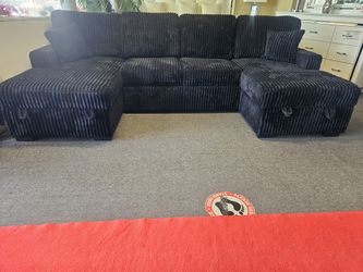 Brand new 60"×115"×60" black fur-like jumbo corduroy sectional with pullout sofa bed and two storage chaises$899San Diego, CA