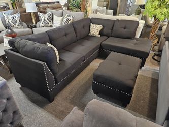 Brand new 104" x 75" black linen reversible sectional + ottoman$799San Diego, CA