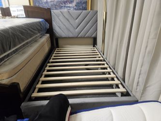 Brand new gray linen twin platform bedframe$159San Diego, CA