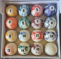 Marbled Pool Balls With Tumber Set And Displau$120Oceanside, CA
