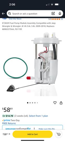 E7265M Fuel Pump Module Assembly Compatible with Jeep Wrangler & Wrangler JK V6 3.6L 3.8L 2009-2018, Replaces (contact info removed)5AA, FG1193$45Vlg Wellingtn, FL