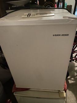 Black and decker mini fridge 25 inches height 18 1/2 with approximate. It works very well.$30San Antonio, TX