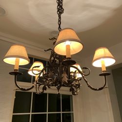 Bronze Iron Chandelier fixture with 5 candle lights covered with shades$75Western Springs, IL