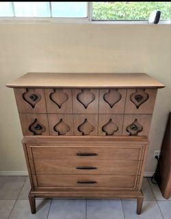 Vintage American Of Martinsville 60s Mid Century Spade Design Walnut 5 Drawer Highboy Dresser$250Los Angeles, CA