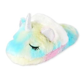 Girls Rainbow Tie Dye Unicorn Slippers