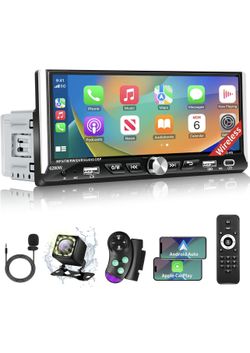 Estéreo de auto de un solo DIN con Apple Car Play inalámbrico y Android Auto, estéreo de auto con pantalla táctil IPS de 6.9" con Bluetooth 5.2, manos$50Paramount, CA