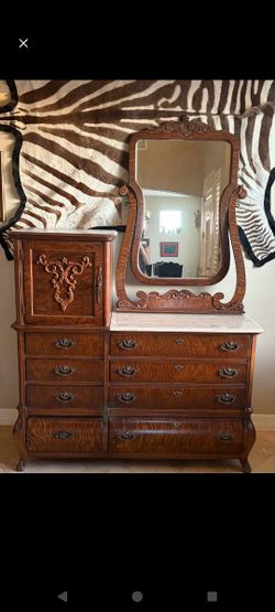 Pulaski Furniture Antique Dresser With Side Marble Top Lionhead Handles And Claw Feet$300Phoenix, AZ