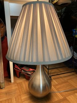 Nice brushed steel table lamp teardrop base needs new shade as pictured. 26” high.$25New York, NY