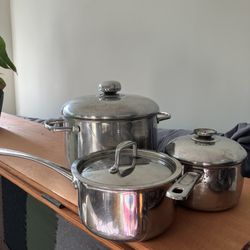3 stainless steel pots with lids (one lid missing grip full grip)..$65New York, NY