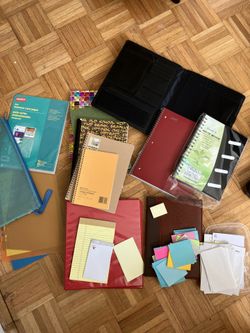 Office supplies school 6-lined paper notebooks, organizer, 1” binder, post-it notes, large plastic zipper case, plastic business card pages, lot of. C$25New York, NY
