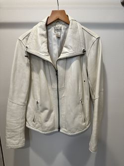 Rare Chico's 100 Percent Leather Jacket Genuine White Leather Moto Jacket Chico's Women Soft Leather Lightweight Short $60Chicago, IL