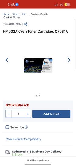 HP 503A Cyan Toner Cartridge, Q7581A$75Lynwood, CA