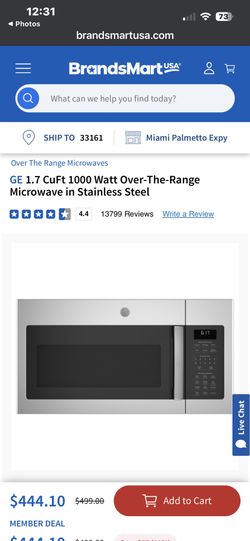 GE 1.7 CuFt 1000 Watt Over-The-Range Microwave in Stainless Steel$300Miami Gardens, FL