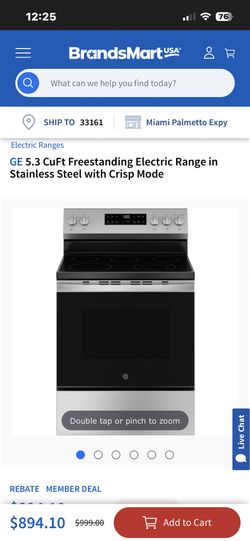 GE 5.3 CuFt Freestanding Electric Range in Stainless Steel with Crisp Mode$750Miami Gardens, FL