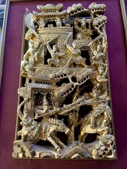 Vintage Chinese Hand-Carved Gilded Gold Wood Wall Panel Battle Scene $200West Hollywood, CA