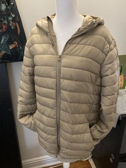Selling a cozy beige puffer jacket with a hood! It's New and perfect for layering. The jacket is lightweight and portable, making it easy to carry ar$20The Bronx, NY