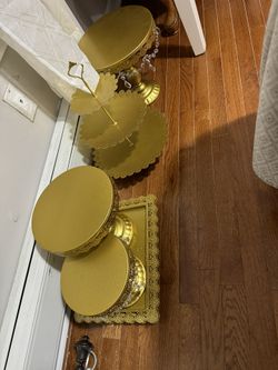 6pc gold party plateware cupcake 3 cake towers 2 trays$120East Haven, CT