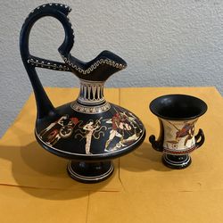Vintage Greek Black Terra-Cotta Hand Painted Ewer Pitcher by D. Vassilopoulos$30Tracy, CA