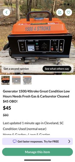 Generator 1500/4stroke $35 OBO!$35Cleveland, SC