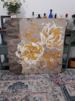 Floral Yellow, White, Gray Canvas Wall Art Painting Large 40"×40"$25Glmn Hot Spgs, CA