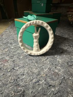 Jonathan Adler White Porcelain Peace Hand Christmas Ornament Like New Box$42Fallbrook, CA