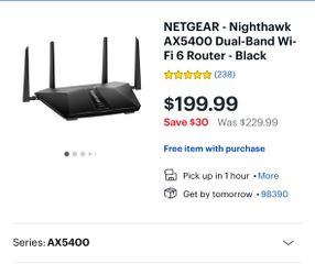 NETGEAR - Nighthawk AX5400 Dual-Band WiFi 6 Router - Black$100Auburn, WA
