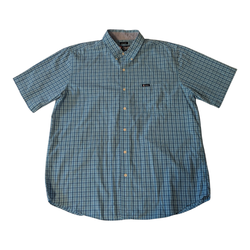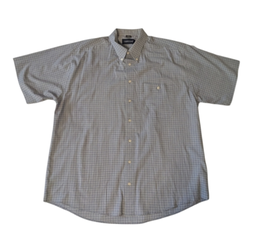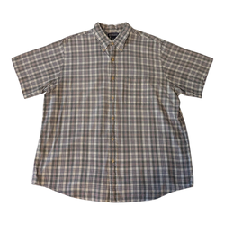 Rare Vintage 90s Finnegan Easy Care Blue Plaid Button Down Collar & Front Short Sleeve Casual Shirt Men's XL (43/44)*$20Round Rock, TX