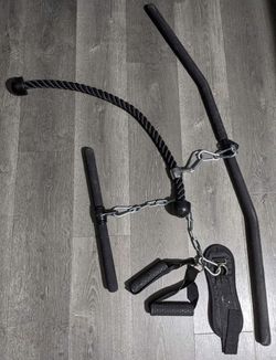 Fitness Invention Lat pulldown bar Triceps rope Straight bar Two handles Ankle strap Universal gym$25Irvine, CA