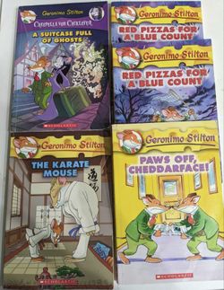 4 + 1 Kids books Geronimo Stilton Scholastic Karate mouse Suitcase ghosts Red pizza blue count Paws$5Irvine, CA