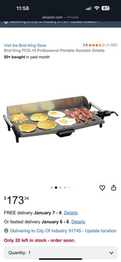 Broil King PCG-10 Professional Portable Nonstick Griddle$80City Of Industry, CA
