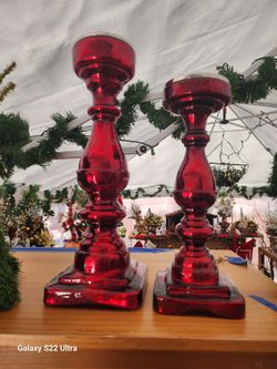 A Pair Of Red Mercury Glass LARGE Candle Holders $40Laguna Niguel, CA