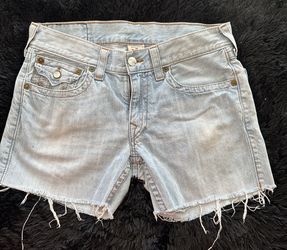True Religion Women’s Sunbleached Frayed Denim Jean Shorts Size 33$15Long Beach, CA