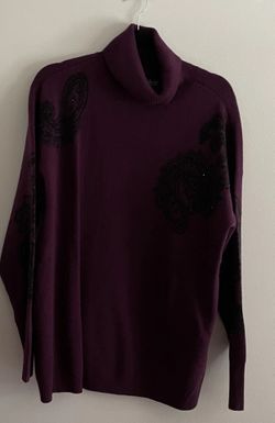 Denim & Co. Signature Women L Deep Wine Jacquard Turtleneck Sweater NWOT$20Lakewood, NJ