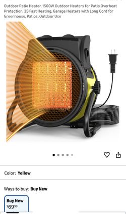 Heater, 1500W Outdoor Heaters for Patio Overheat Protection, 3S Fast Heating, Garage Heaters with Long Cord for Greenhouse, Patios, Outdoor$49Riverside County, CA