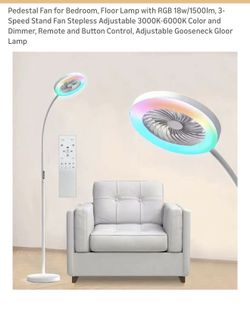 Pedestal Fan for Bedroom, Floor Lamp with RGB 18w/1500lm, 3-Speed Stand Fan Stepless Adjustable 3000K-6000K Color and Dimmer, Remote and Button Contro$35Riverside County, CA