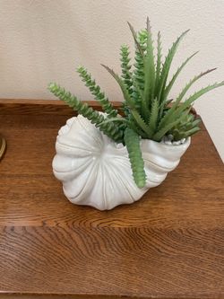Ceramic shell planter with faux succulents$10Temecula, CA