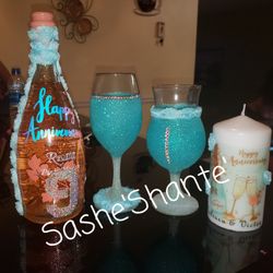 Custom bottles wine glasses and candle$55Lithonia, GA