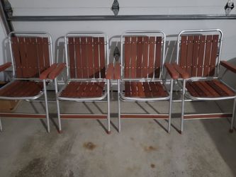 4 Vintage RED WOOD 6 Slat Aluminum Folding Chairs$199Richmond Heights, OH