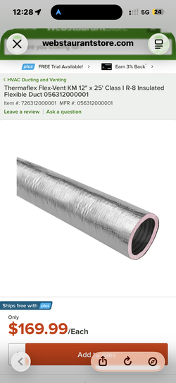 • Thermaflex Flex-Vent KM 12″ × 25′ (R-8 insulation)$100Whittier, CA