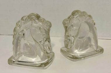 Vintage Pair Art Deco FEDERAL Clear Glass HORSE HEAD Bookends 51/2" X 41/2"$20Phoenix, AZ